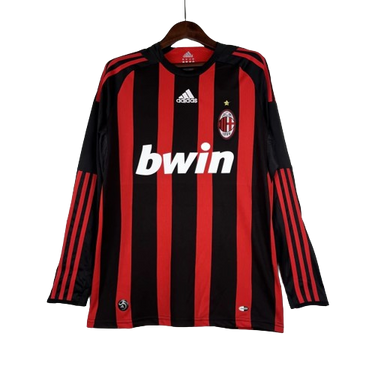 Camisa Retrô Milan I Home Adidas 2008/09 Manga Longa Vermelho e Preto