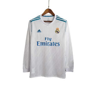 Camisa Retrô Real Madrid I Home Adidas 2017/18 Manga Longa Masculino Branco